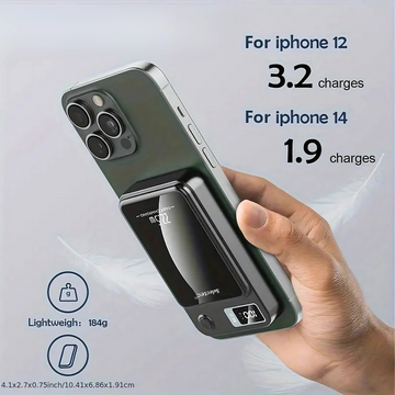 Dank starker magnetischer Adsorption und Schnellladefunktion können Sie die Powerbank einfach an Ihr iPhone anheften und kabellos laden oder den USB-Type-C-Anschluss nutzen, um andere Geräte zu versorgen. Perfekt für Reisen, Outdoor-Abenteuer oder den täglichen Gebrauch – diese Powerbank sorgt dafür, dass Ihnen unterwegs niemals die Energie ausgeht.